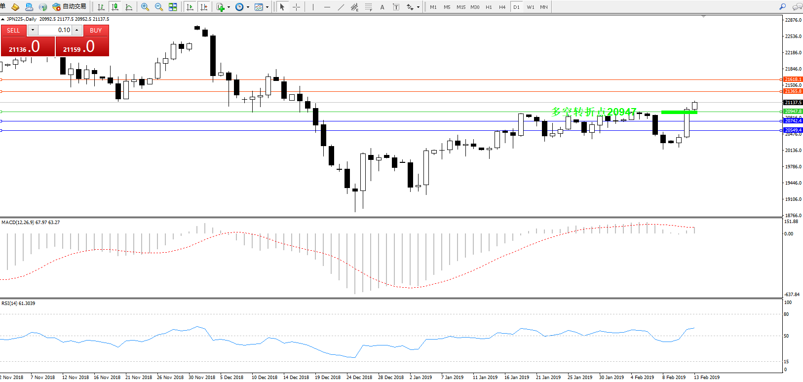 日本股市在星期三收高,其中运输设备、通讯和化工、石油和塑料等上涨的板块带领股指走高。日本东京收盘时,日经225指数上涨1.34%,创近一月新高。美国总统特朗普的表态也提振了风险资产。特朗普周二表示,如果中美双方接近达成贸易协议,他可能会让达成协议的3月1日最后期限“推迟一段时间”。 美国国会达成原则协议避免政府再度停摆,协助带动美股上日走高。
