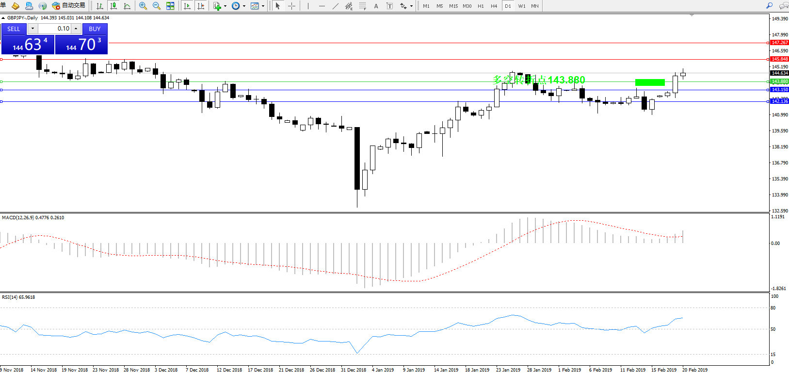 交易策略:143.880上方看涨,目标145.848、147.267