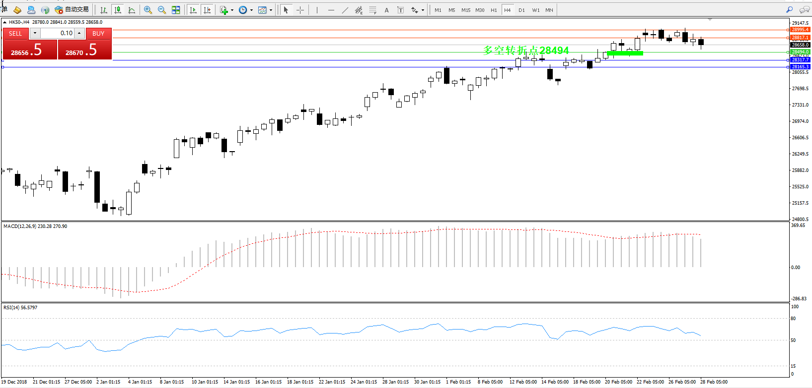 亚洲股市多数收跌,沪深两市维持震荡格局,收盘涨跌互现,香港恒生指数冲高回落,午后转跌,截至收盘跌0.43%,报28633.18点,中国国家统计局服务业调查中心高级统计师赵庆河对中国2月PMI解读时指出,新出口订单指数和进口指数均持续位于临界点以下,在全球增长势头减弱和贸易保护主义加剧的影响下,对外贸易压力较大。
