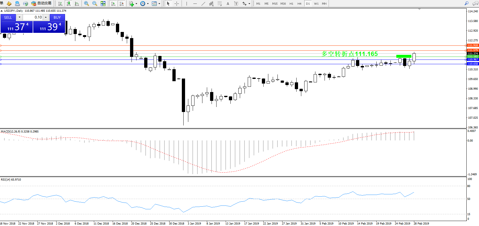 美元兑日圆升至10周高位,美国四季度GDP回落至2.6%,全年增速跌破3%但创2015年来最高,美国经济第四季成长强於预期。GDP报告不会改变美国联邦储备理事会(FED/美联储)的政策轨迹。美国总统唐纳德·J·特朗普与朝鲜民主主义人民共和国国务委员会委员长金正恩于2019227日至28日,在越南河内展开了良好和具有建设性的会谈。双方领导人讨论了推进无核化的多种途径与经济驱动的概念。投资者也在关注印度和巴基斯坦之间的紧张局势。加上美国总统特朗普的前私人律师科恩今天的证词,可能会加剧股市波动,带来避险买盘,尽管这可能是短暂的 。另外中美贸易谈判仍然存在很多变数,料不会太顺利,这对全球经济正在形成负面影响。