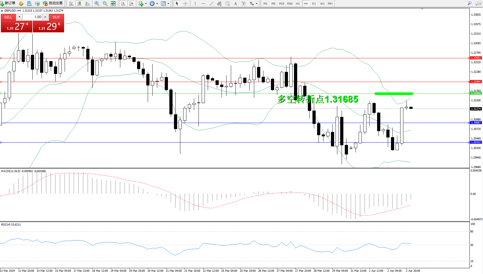 交易策略:1.31685下方看跌,目标1.30887、1.30352