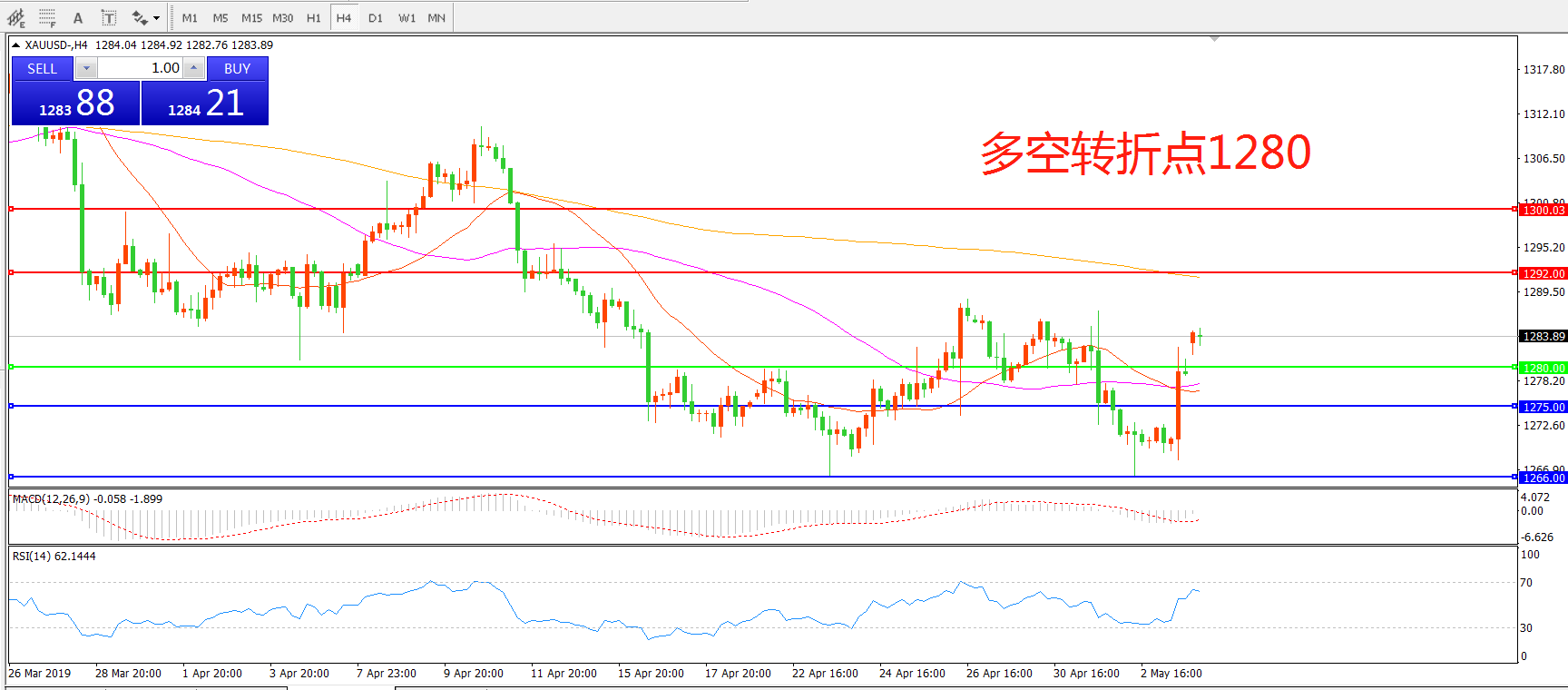 交易策略:在1280.00之上看涨,目标1292.00 1300.00