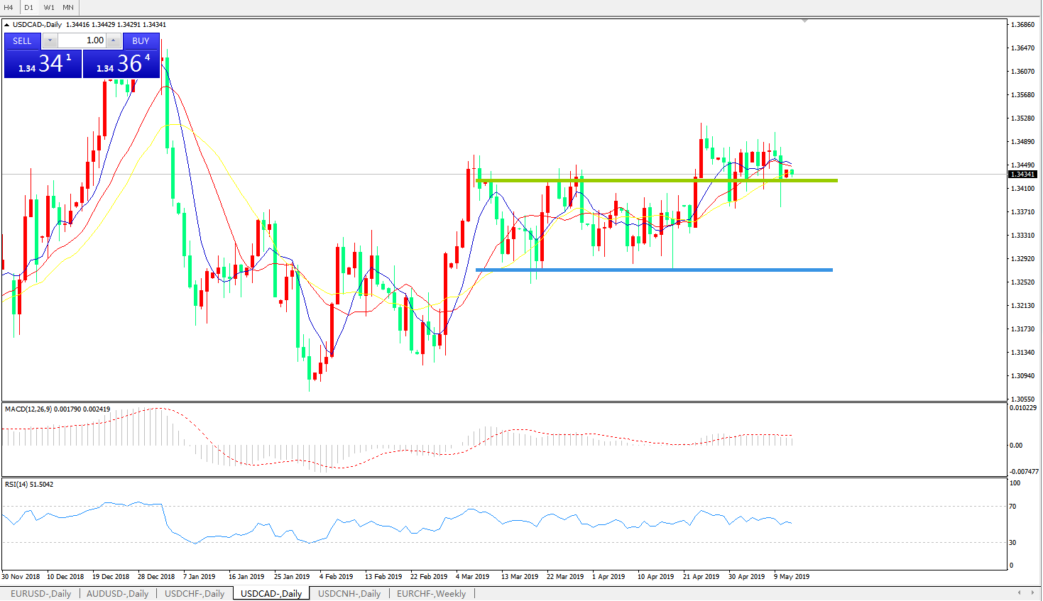 美元兑加元USDCAD 日线图: