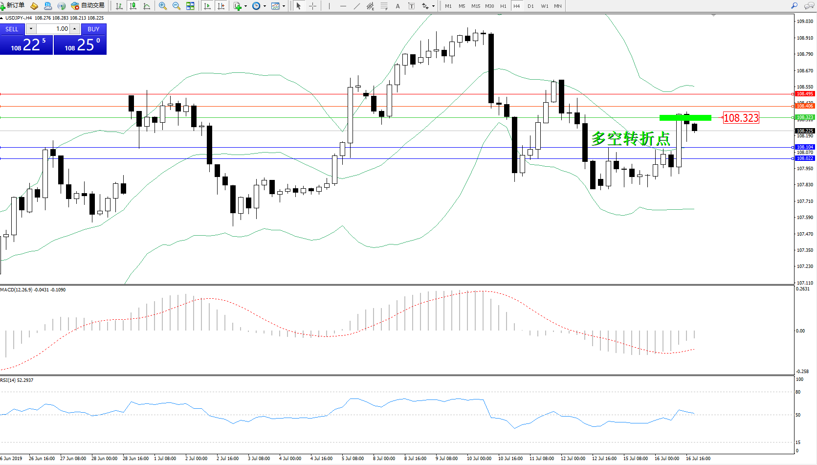 交易策略:108.323下方看跌,目标108.104、108.022