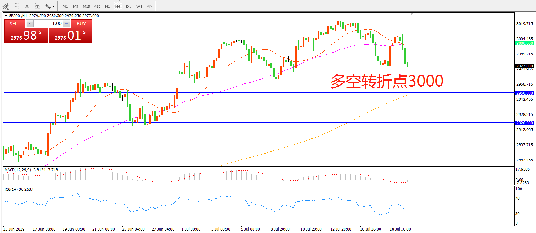 多空转折点:3000.00
