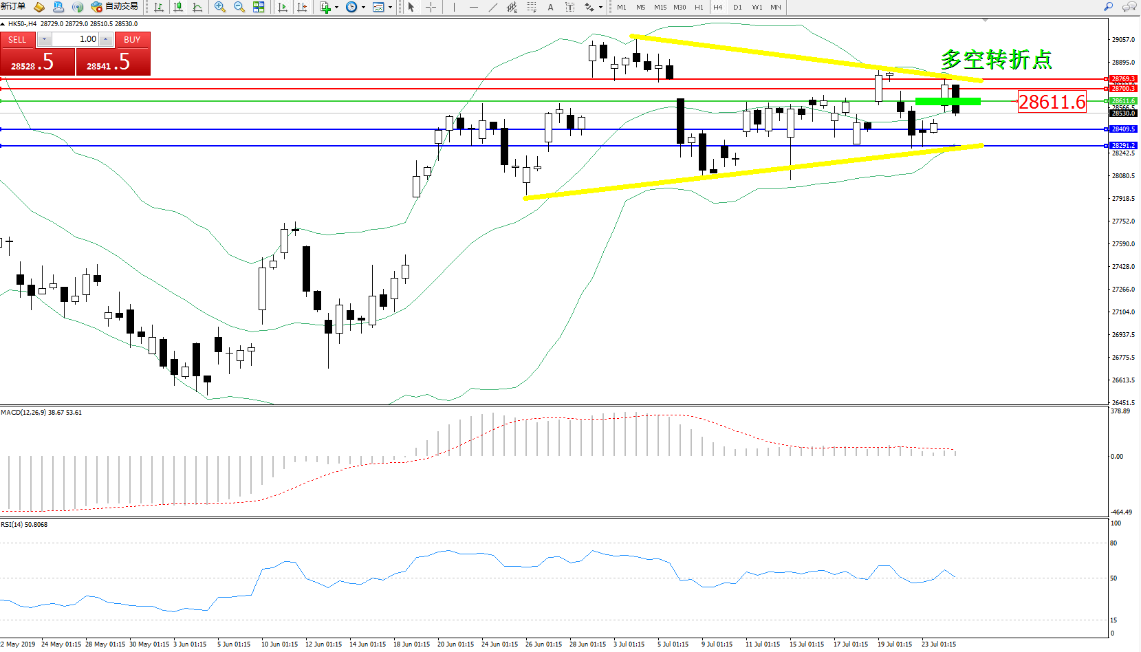 香港恒生指数724日(周三)收盘上涨57.56点,涨幅0.20%,报28524.04点;跟随外围股市造好恒指高开,并逐步扩大升幅,最高触及28764。美联储降息预期继续影响股市情绪,美股上涨逼近历史新高,暗示市场风险偏好较高,同时受市场对大型科技股业绩乐观情绪以及中美有望下周重启贸易谈判的影响。