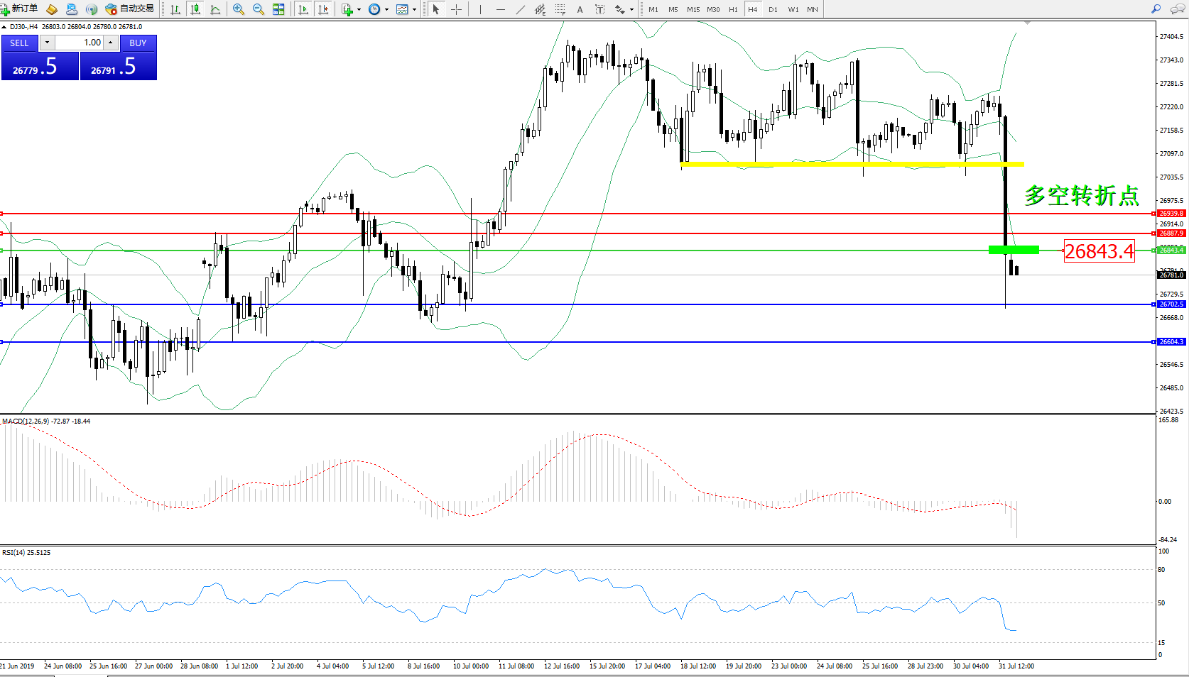 道琼斯指数7月31日(周三)收盘下跌333.80点,跌幅1.23%,报26864.27点。北京时间8月1日凌晨2时,美联储宣布下调联邦基金利率25个基点至2.00%-2.25%。这是2008年12月以来美联储的首次降息。美国总统特朗普表示,美联储主席鲍威尔让我们失望了,称市场需要更漫长的降息周期。