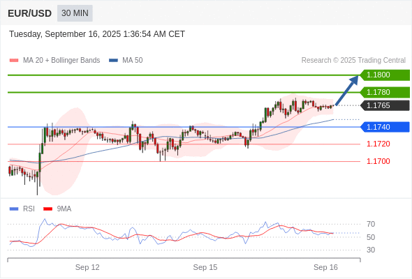 在 1.1740 之上,看涨,目标价位为 1.1780 ,然后为 1.1800 。