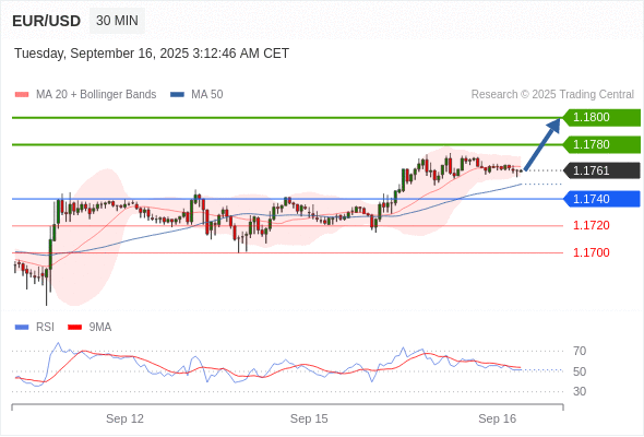 在 1.1740 之上,看涨,目标价位为 1.1780 ,然后为 1.1800 。