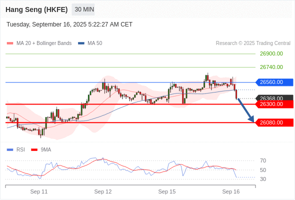 交易策略: 在 26560.00 之下,看跌,目标价位为 26300.00 ,然后为 26080.00 。