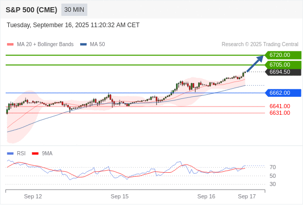在 6662.00 之上,看涨,目标价位为 6705.00 ,然后为 6720.00 。