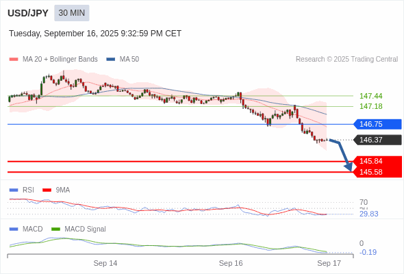 美元/日元 当日内 : 看跌,在 146.75 之下。