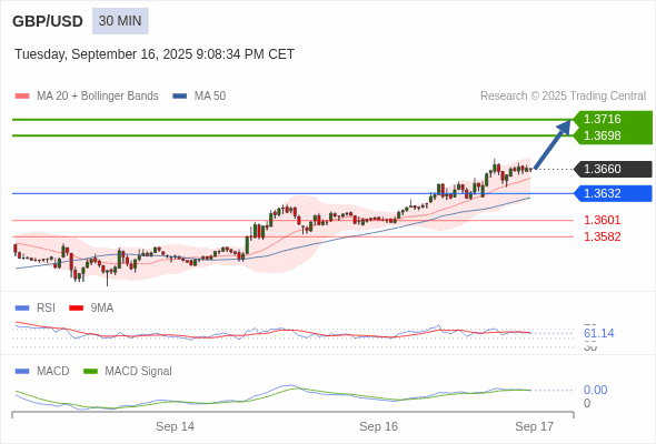 交易策略: 看涨,当 1.3632 为支撑位,目标定在1.3716。