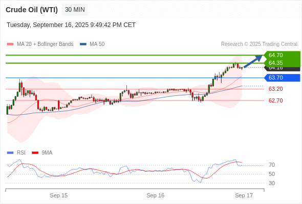 在 63.70 之上,看涨,目标价位为 64.35 ,然后为 64.70 。