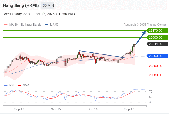 香港恒生指数期货 当日内: 朝27170.00运行。