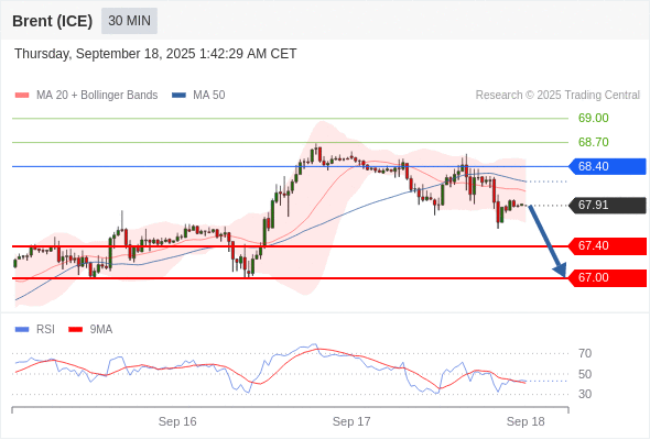 交易策略: 在 68.40 之下,看跌,目标价位为 67.40 ,然后为 67.00 。