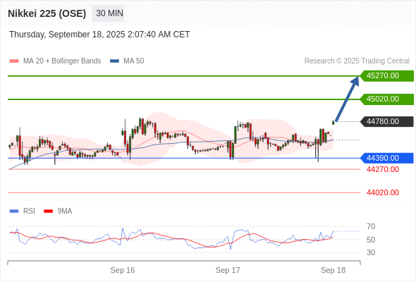 在 44390.00 之上,看涨,目标价位为 45020.00 ,然后为 45270.00 。