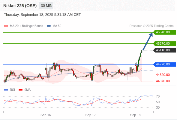 日经225股指期货 (OSE) 当日内: 目标位为45270.00。