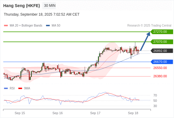在 26670.00 之上,看涨,目标价位为 27070.00 ,然后为 27270.00 。