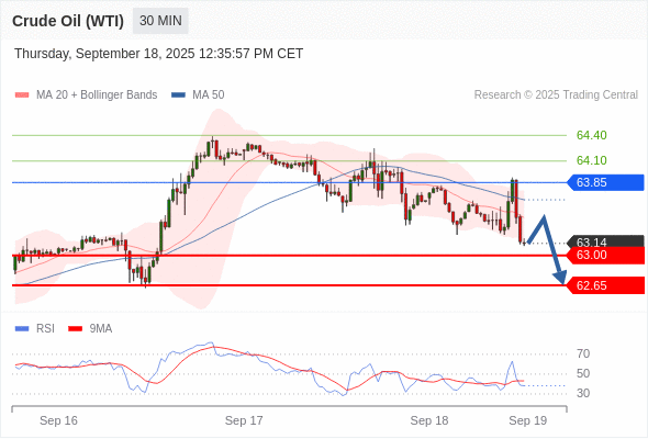 在 63.85 之下,看跌,目标价位为 63.00 ,然后为 62.65 。