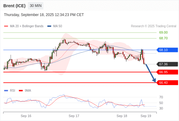 在 68.10 之下,看跌,目标价位为 66.95 ,然后为 66.40 。