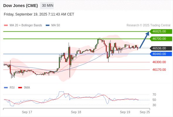 在 46440.00 之上,看涨,目标价位为 46700.00 ,然后为 46825.00 。