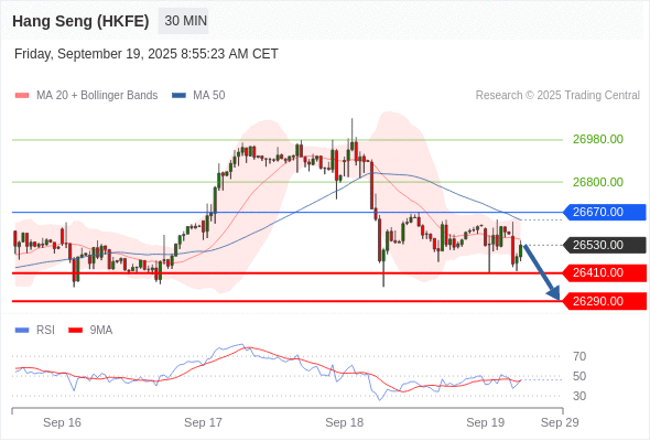 在 26670.00 之下,看跌,目标价位为 26410.00 ,然后为 26290.00 。