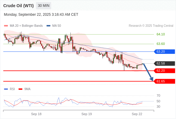 在 63.20 之下,看跌,目标价位为 62.20 ,然后为 61.65 。