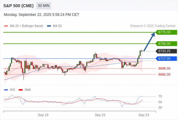 在 6717.00 之上,看涨,目标价位为 6750.00 ,然后为 6775.00 。