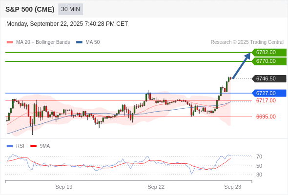 交易策略: 在 6727.00 之上,看涨,目标价位为 6770.00 ,然后为 6782.00 。