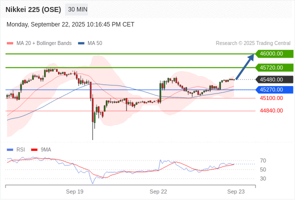在 45270.00 之上,看涨,目标价位为 45720.00 ,然后为 46000.00 。