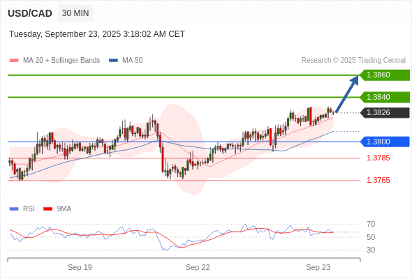 在 1.3800 之上,看涨,目标价位为 1.3840 ,然后为 1.3860 。