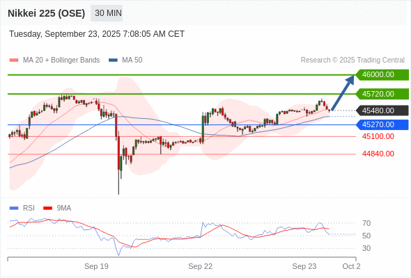 在 45270.00 之上,看涨,目标价位为 45720.00 ,然后为 46000.00 。