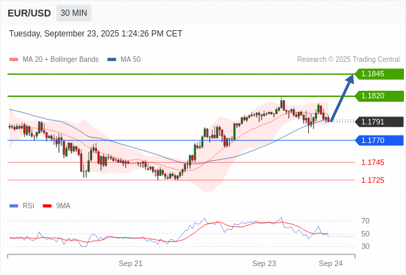 在 1.1770 之上,看涨,目标价位为 1.1820 ,然后为 1.1845 。