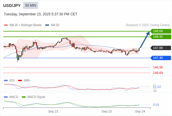 交易策略: 看涨,当 147.40 为支撑位。