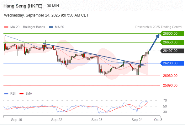 香港恒生指数期货 当日内: 目标位为26650.00。