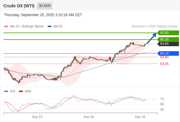 在 64.10 之上,看涨,目标价位为 65.25 ,然后为 65.80 。