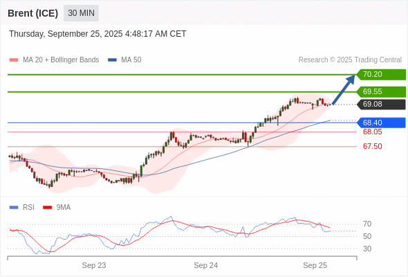 在 68.40 之上,看涨,目标价位为 69.55 ,然后为 70.20 。