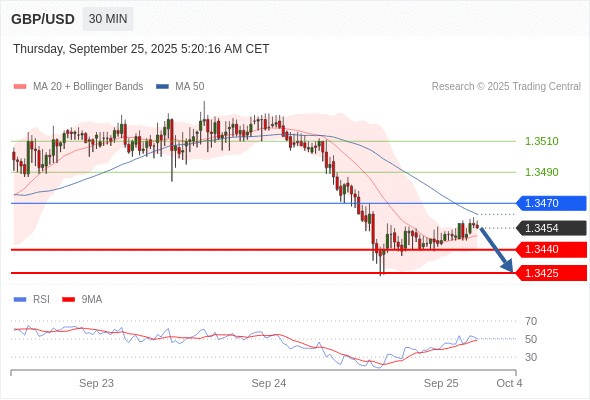 在 1.3470 之下,看跌,目标价位为 1.3440 ,然后为 1.3425 。