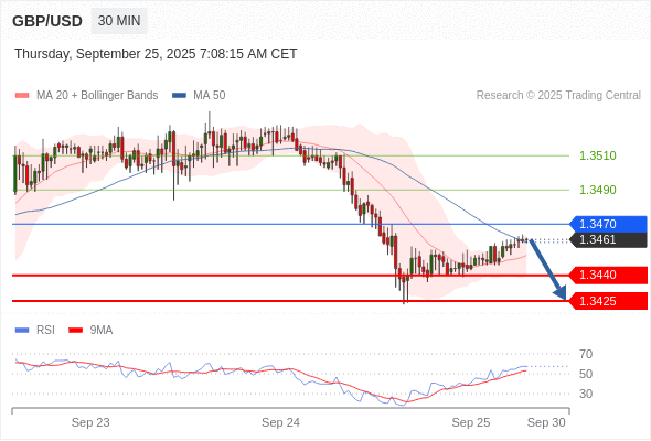 在 1.3470 之下,看跌,目标价位为 1.3440 ,然后为 1.3425 。