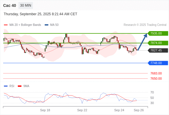 在 7748.00 之上,看涨,目标价位为 7874.00 ,然后为 7935.00 。