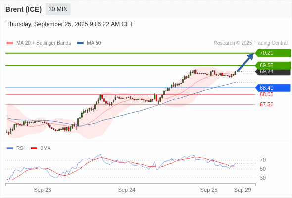 在 68.40 之上,看涨,目标价位为 69.55 ,然后为 70.20 。