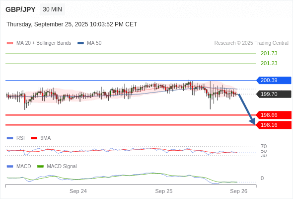 英镑/日元 当日内: 看跌,在 200.39 之下。