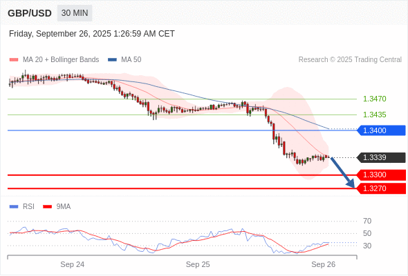 在 1.3400 之下,看跌,目标价位为 1.3300 ,然后为 1.3270 。