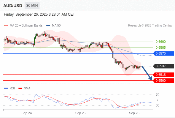 在 0.6570 之下,看跌,目标价位为 0.6515 ,然后为 0.6500 。