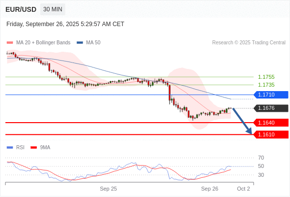 交易策略: 在 1.1710 之下,看跌,目标价位为 1.1640 ,然后为 1.1610 。