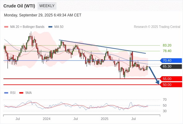 在 70.40 之下,看跌,目标价位为 55.00 ,然后为 50.00 。