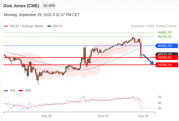 在 46660.00 之下,看跌,目标价位为 46490.00 ,然后为 46385.00 。