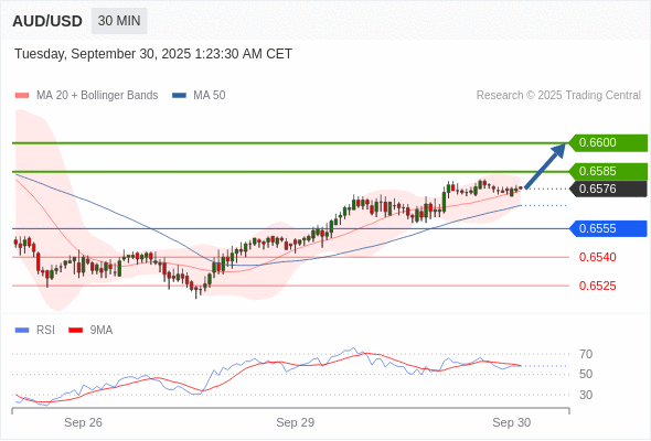 在 0.6555 之上,看涨,目标价位为 0.6585 ,然后为 0.6600 。