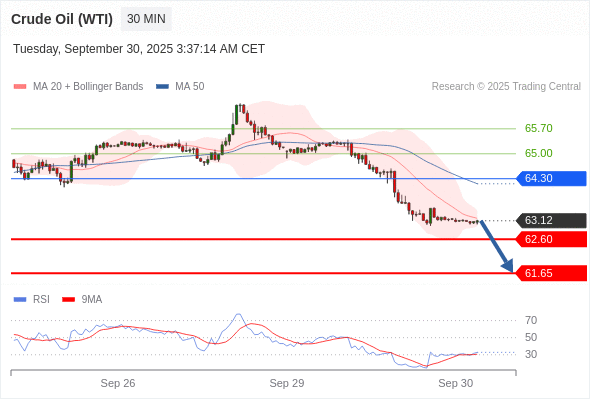 在 64.30 之下,看跌,目标价位为 62.60 ,然后为 61.65 。
